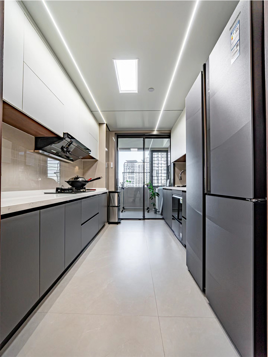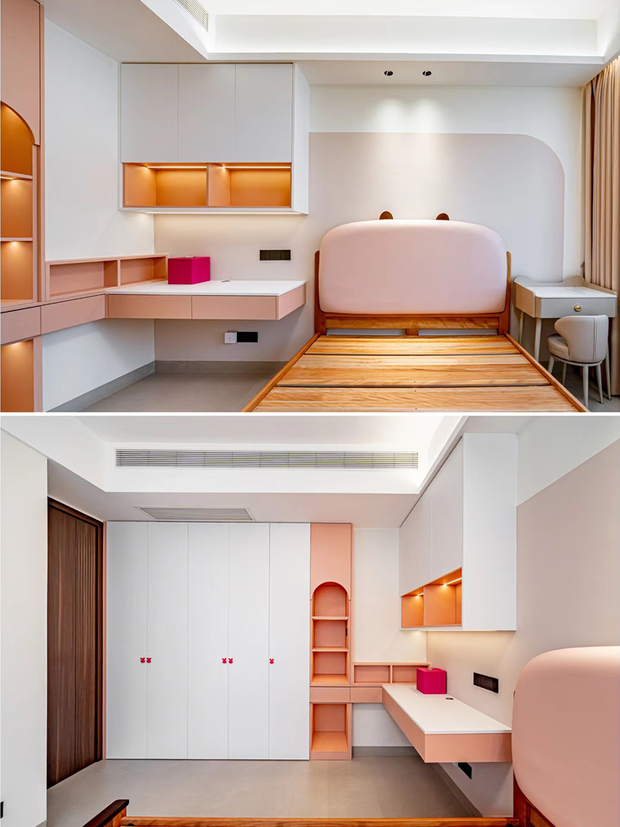 全房門墻柜一體,整體色調(diào)統(tǒng)一和諧,搭配現(xiàn)代風(fēng)格軟裝家具,耐看又耐用。