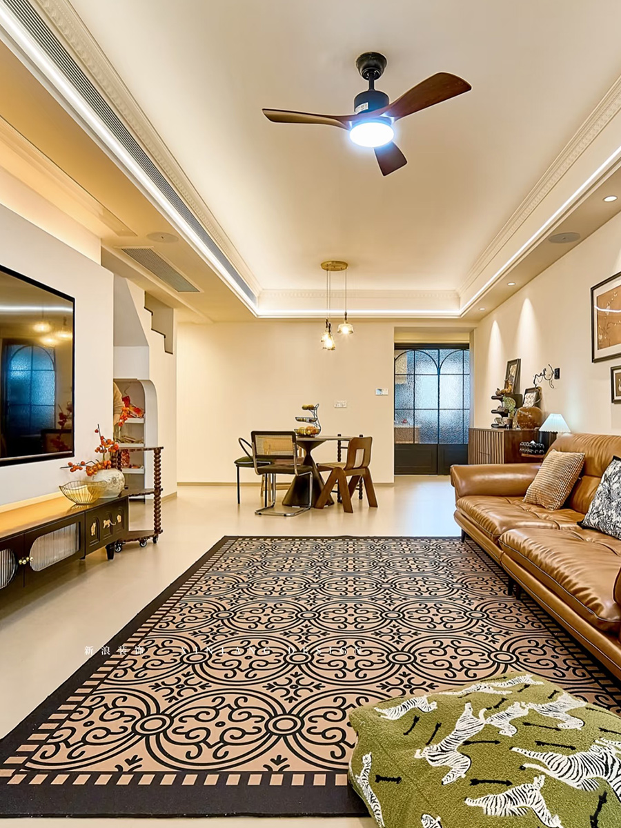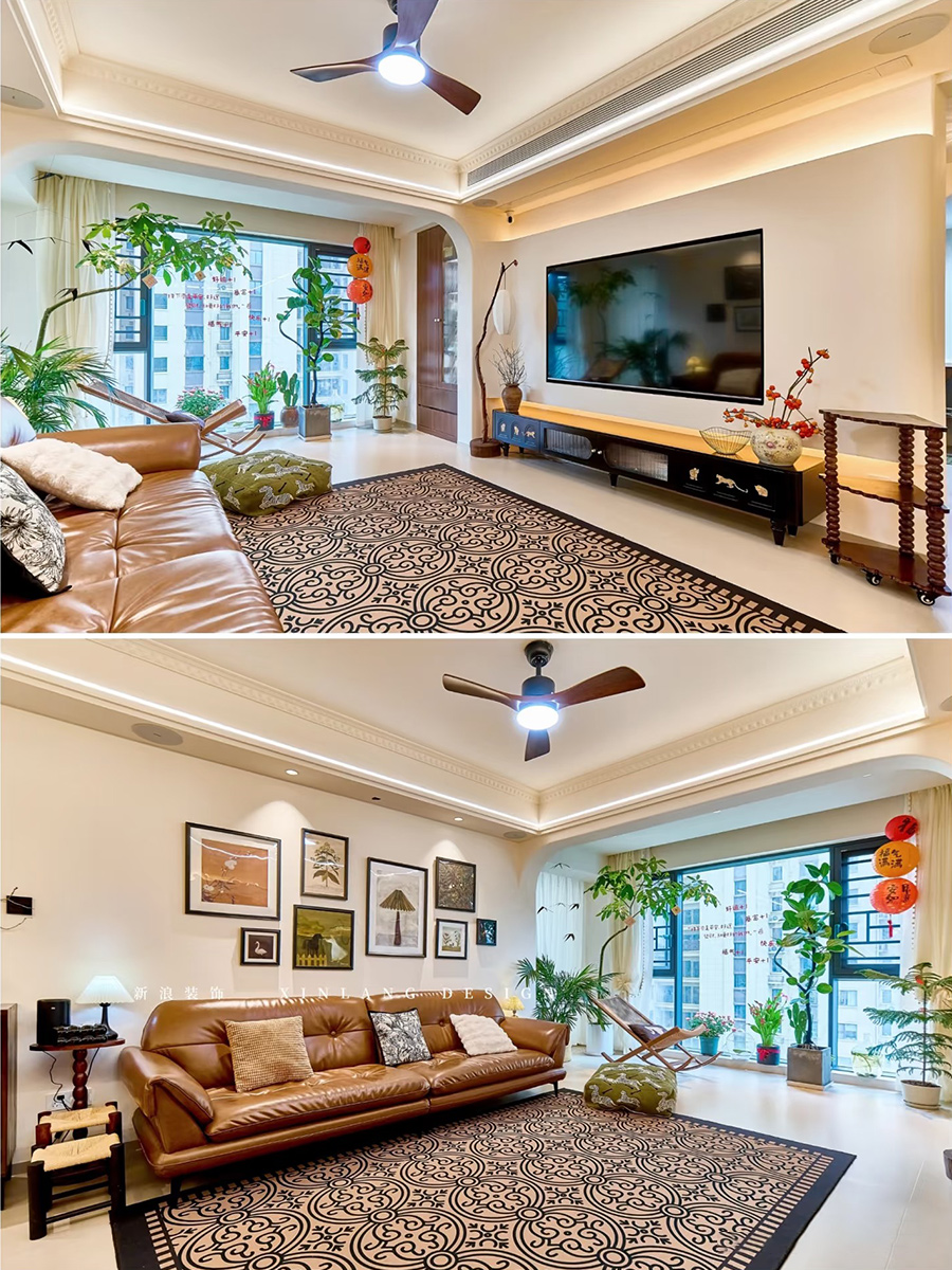 復(fù)古掛畫(huà)、品味綠植、風(fēng)扇吊燈、有藝術(shù)感的軟裝飾品的點(diǎn)綴,讓空間層次分明,更有氛圍感