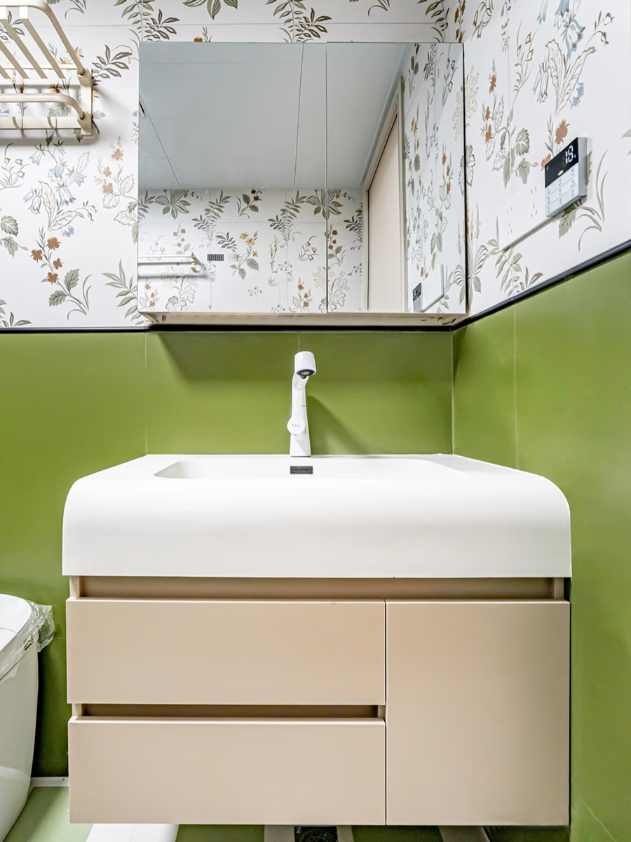 全房以濃郁的綠、黑、暖棕點綴,復古氛圍鋪面而來!