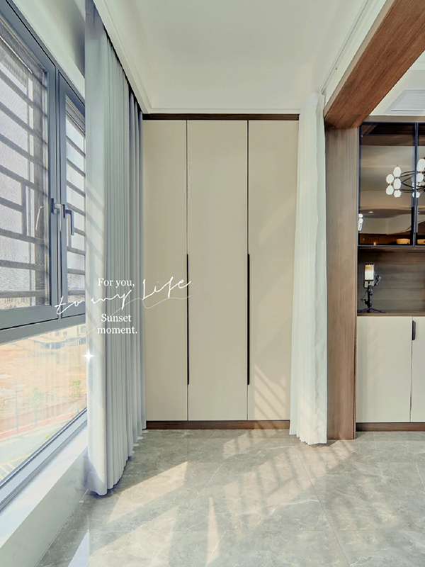 √全屋定制:柜體板材是十環(huán)認(rèn)證萬象天冠足18厚杉木實(shí)芯板,柜門做的是歐松板模壓門;五金是奧地利進(jìn)口百隆五金、徹底實(shí)現(xiàn)門墻柜一體化;