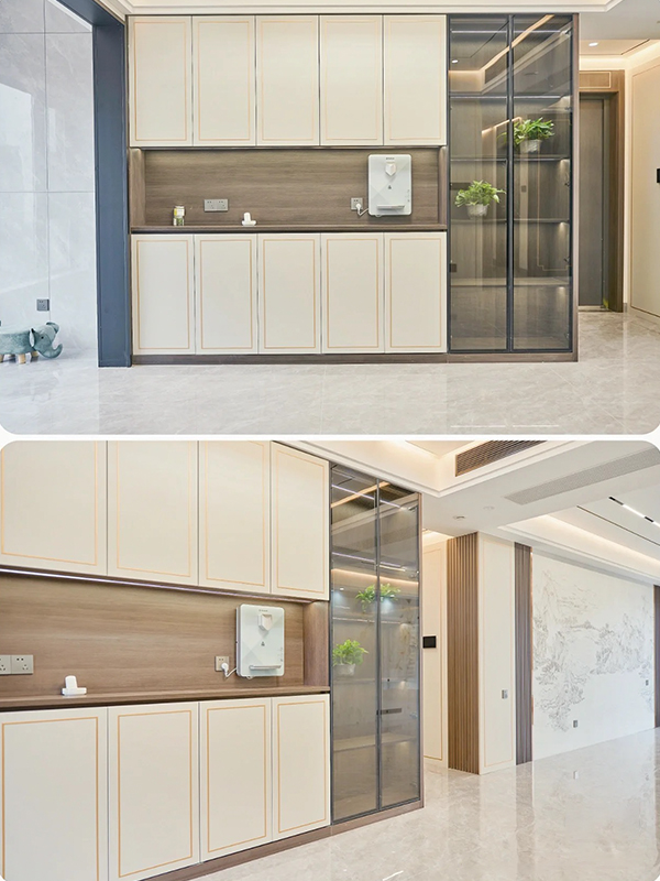 √全屋定制:柜體板材是十環(huán)認(rèn)證萬(wàn)象天冠足18厚杉木實(shí)芯板,柜門(mén)做的是歐松板模壓門(mén);五金是奧地利進(jìn)口百隆五金、徹底實(shí)現(xiàn)門(mén)墻柜一體化;