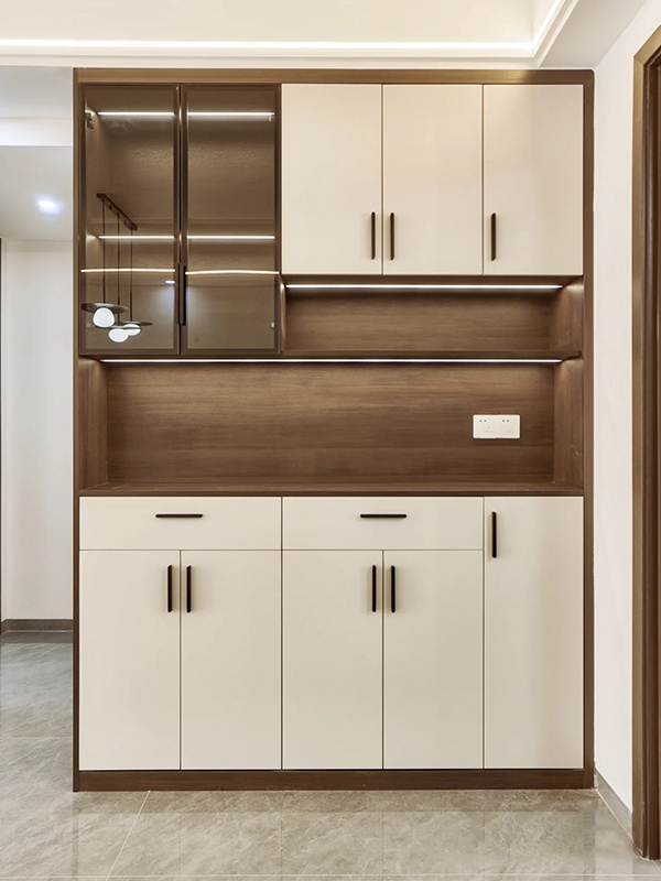 部分柜子搭配燈帶+玻璃門,減少整體的厚重感,更顯時(shí)尚
