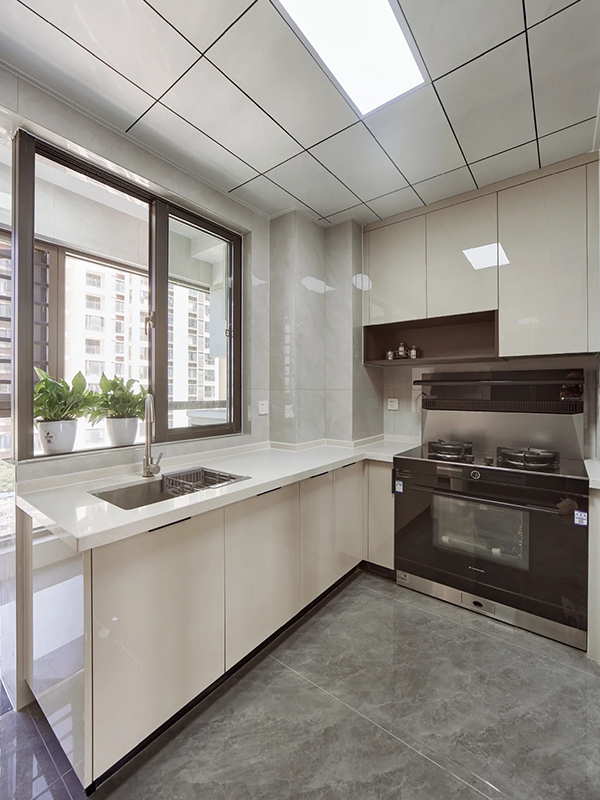 深色柜體,Pet膚感柜門搭配短拉手更顯精致統(tǒng)一