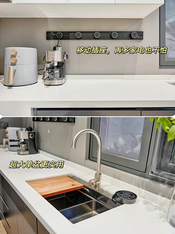 家里廚房小家電不知不覺就會添置很多,電飯煲、空氣炸鍋、熱水壺、蒸蛋器等等,有了移動插座,各種電線再也不打架。